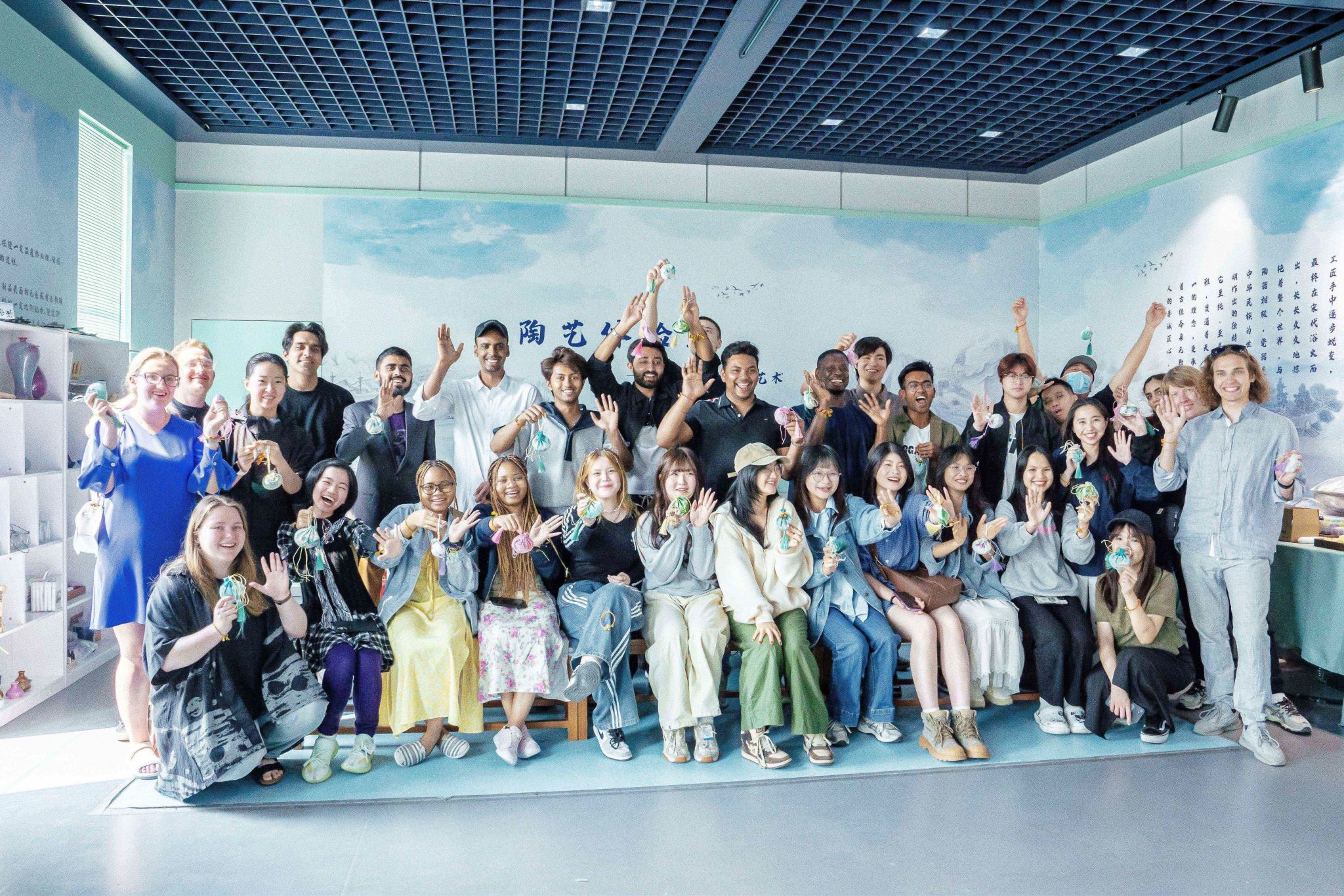 在“参观探索”环节,学生们通过观看视频、节俗讲解等方式,深入学习了端午节的起源与发展,他们认识到端午节是中国人对于自然时间认识的智慧体现,理解了传统节日背后的历史故事与文化传承;在“手工制作”环节,各国学生亲手制作艾草香囊,用一针一线串起驱邪祈福的美好寓意。俄罗斯学生ALINA CHEBESOVA表示,今天的节日体验让她意识到,文化的美其实发源于生活,手工制作香囊的创意体现了中国人在这个温暖季节对于健康与向上的追求。印度尼西亚学生JUSTIN LUVIAN WIJAYA说:博物里的学生活动有特别的感觉,很容易就发现了端午节的意义非常丰富,是很有生命力的节日。从手工老师和讲解员的介绍中,国际学生们了解到,中国的端午节是多民族共享的节日,有着深刻的文化价值,同时,端午节将自然中的阴阳与身体、生命观念有机结合,映射了人和自然和谐共生的理念。