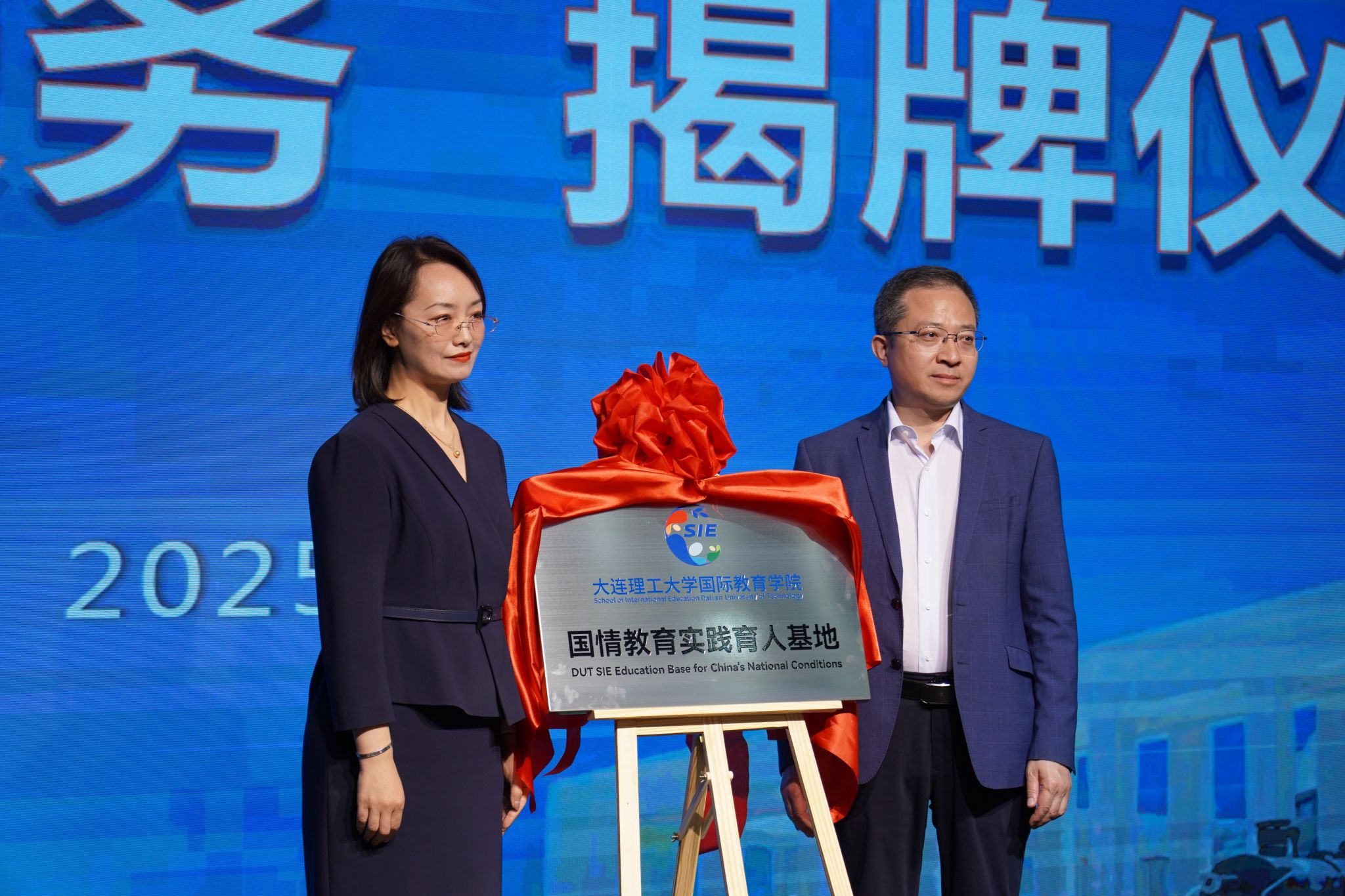仪式上,大连博物馆馆长姜晔与国际教育学院院长段玉平分别代表双方签署了《馆校共建协议书》;大连市社会工作部四处处长李文超与院长段玉平共同为国情教育实践育人基地揭牌。