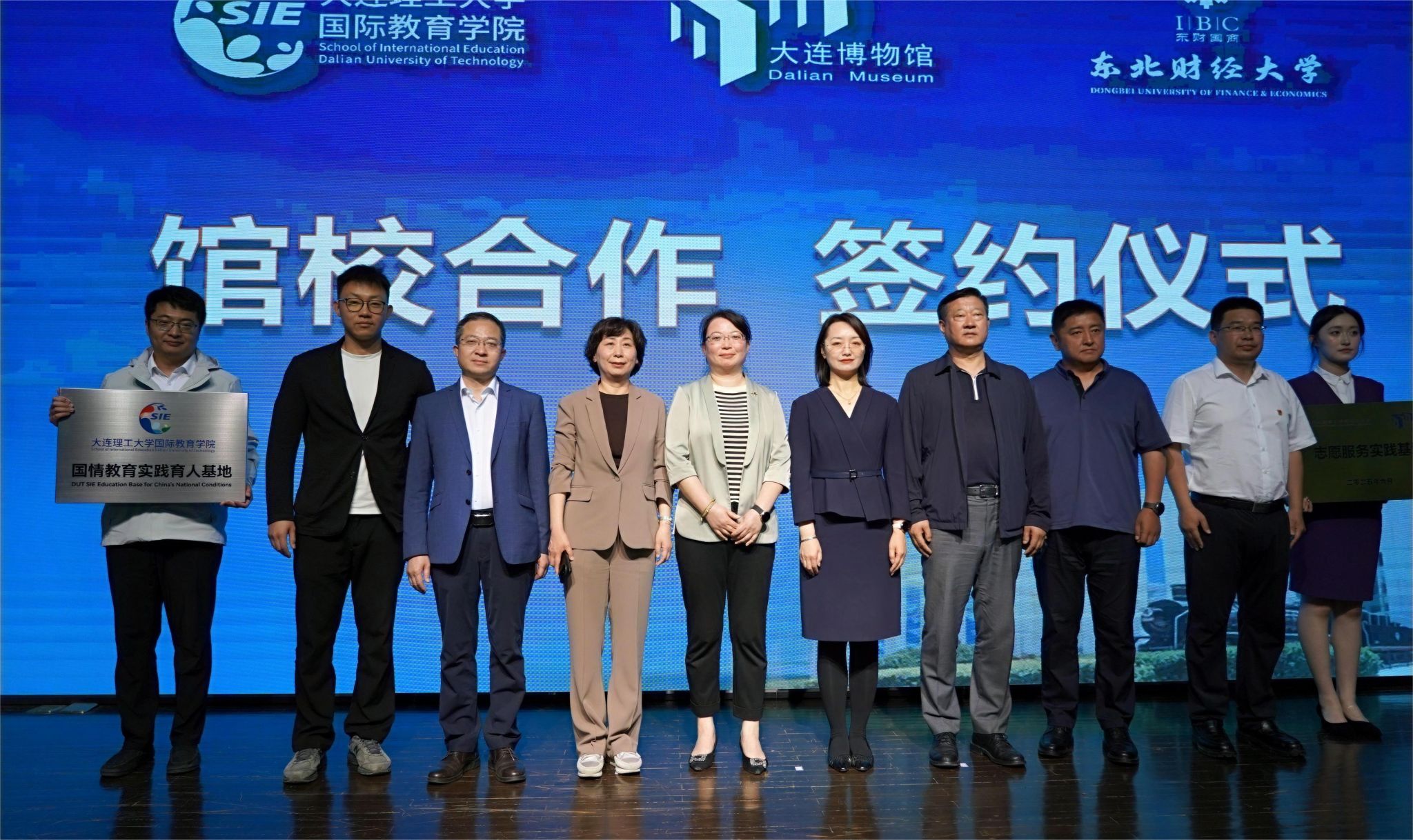 为建立健全协同育人机制,打造实践教育育人平台,6月3日上午,大连理工大学国际教育学院与大连博物馆举行学生国情教育实践育人基地签约揭牌仪式。大连市社会工作部四处处长李文超、大连市文化和旅游局文物处处长甄艳萍、大连博物馆馆长姜晔、大连理工大学国际教育学院院长段玉平及学院相关老师出席仪式。