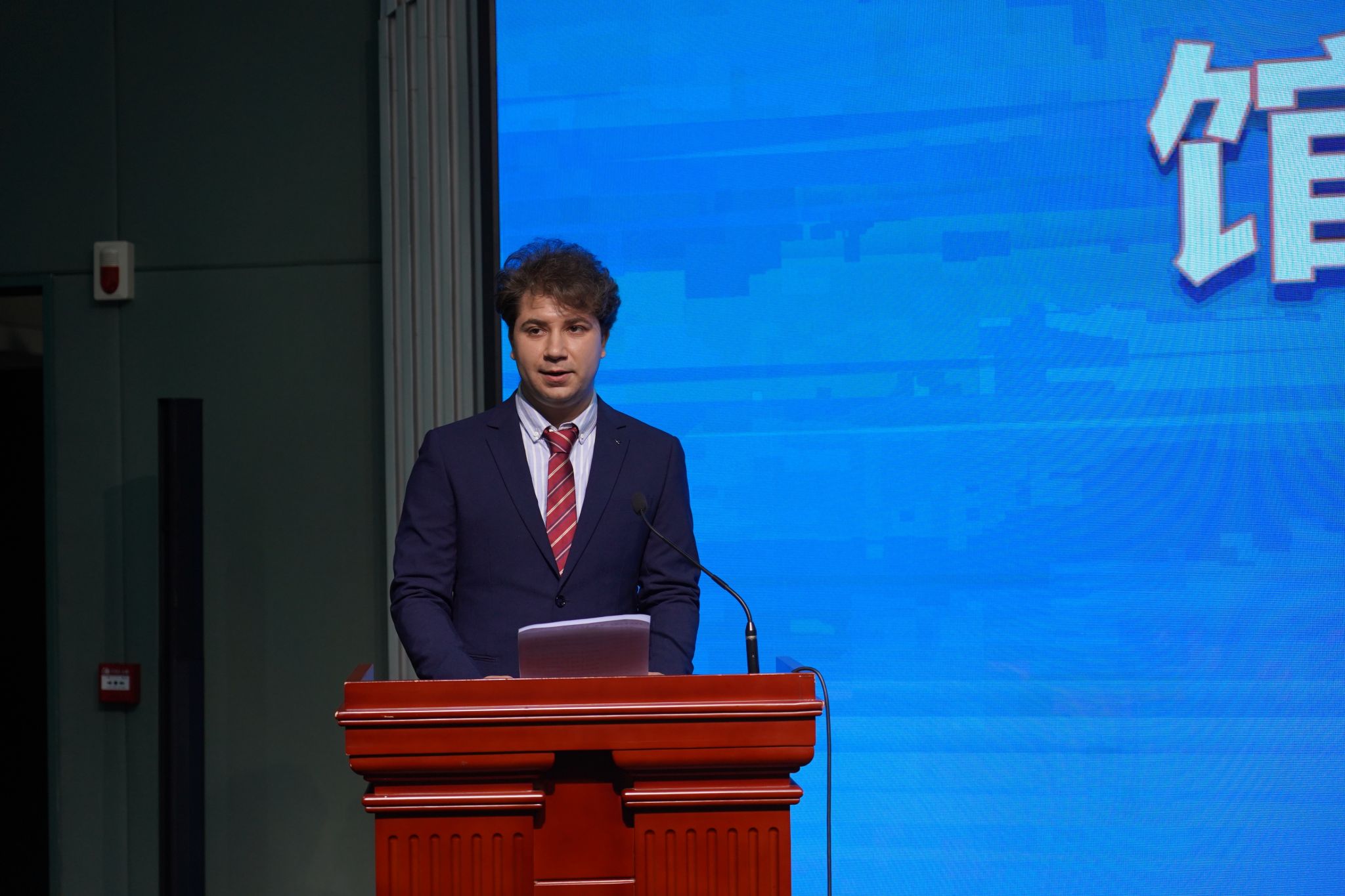 在读硕士研究生、DUT语言交流协会会长李浩然(罗马尼亚)代表国际学生发言。作为学院国情教育发展的见证者之一,他表示非常期待在这一新的实践育人基地开阔视野,增长见识,结交友谊,收获成长。