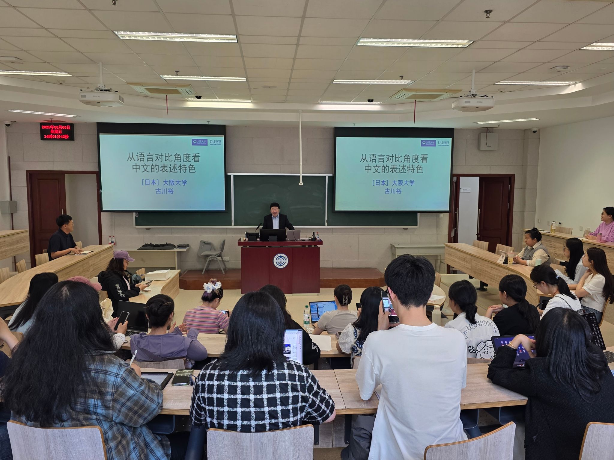 6月6日下午,国际教育学院第40期国际教育讲坛如期举办,本次论坛邀请了日本大阪大学古川裕教授开展主题为“从语言对比角度看中文的表述特色”的讲座。本次讲座由汉硕实践中心主任王嘉天老师主持,我院一线教师与国际中文教育专业硕士研究生参加此次讲座。