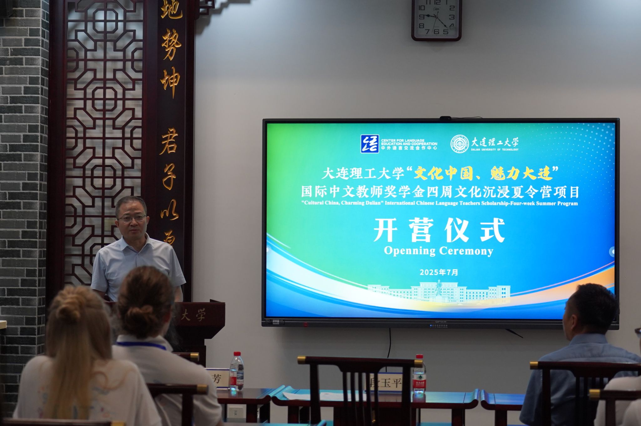 2025年7月4日,2025年度“文化中国,魅力大连”国际中文教师奖学金四周文化沉浸夏令营开营仪式在大连理工大学海川楼D109顺利举行。国际教育学院院长段玉平教授、副院长张继东、院长助理杜芳、项目教师团队以及来自蒙古、韩国、俄罗斯、白俄罗斯的学员参与了本次开营。本次夏令营由教育部语合中心指导,大连理工大学精心策划,旨在通过四周的文化沉浸体验,提升国际学生的中文水平,促进中外文化交流。