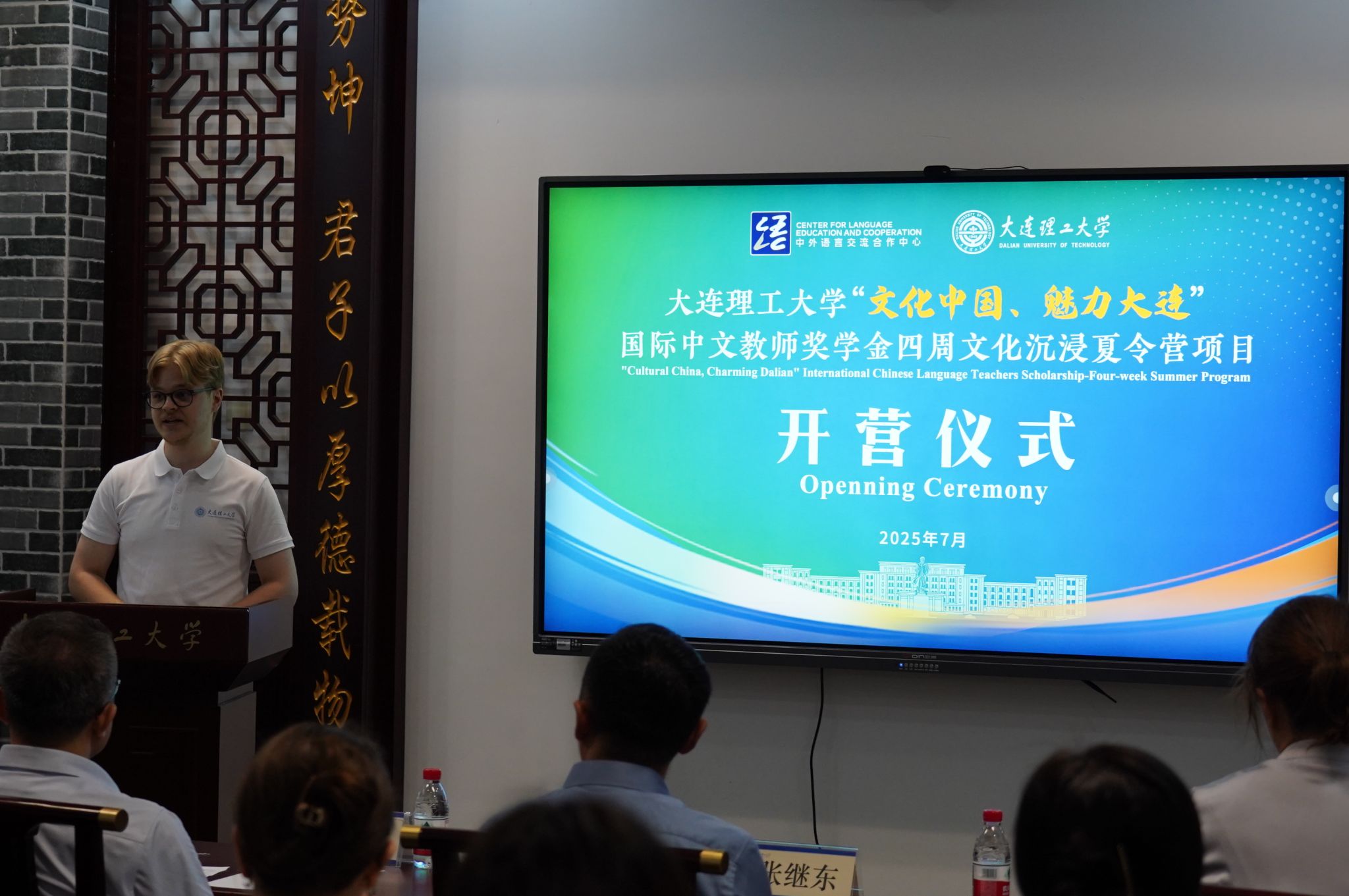 随后,来自俄罗斯莫斯科的学员代表叶泽言上台发言,他感谢大连理工大学提供了这次宝贵的学习机会,并表示将珍惜接下来的一个月时间,努力学习中文,深入了解中国文化,将所学知识和经验带回自己的国家。