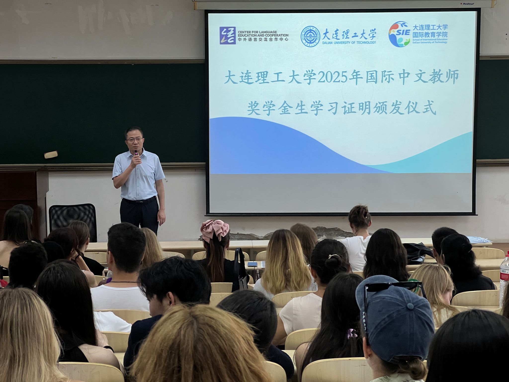7月4日,由教育部中外语言交流合作中心支持的2024国际中文教师奖学金项目一学年及2025春一学期非学历项目,在大连理工大学顺利结业。大连理工大学国际教育学院为来自17个国家的73名国际中文教师奖学金生举办学习证明颁发仪式,仪式由国际教育学院院长助理杜芳副教授主持,国际教育学院院长段玉平教授、副院长张继东出席。