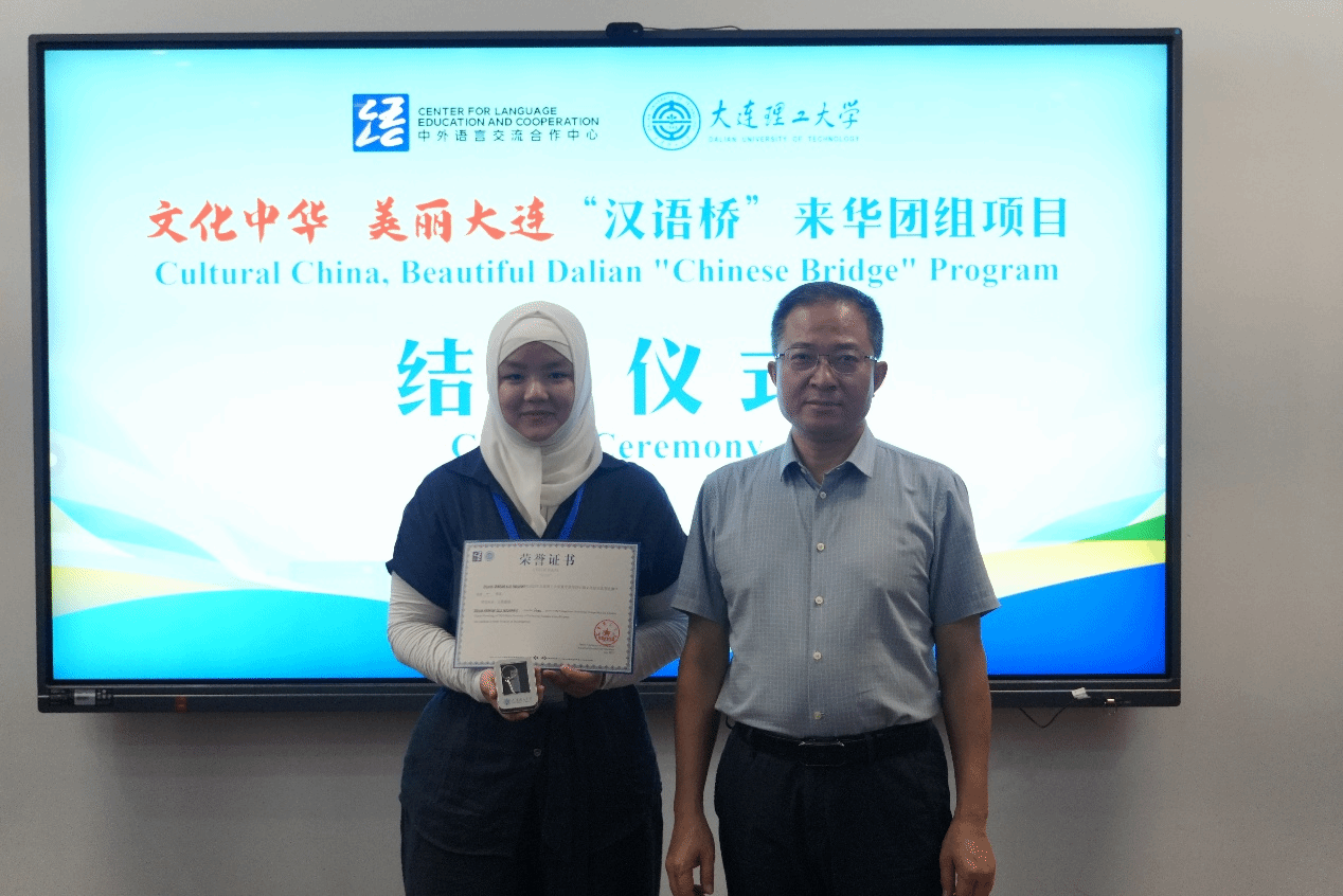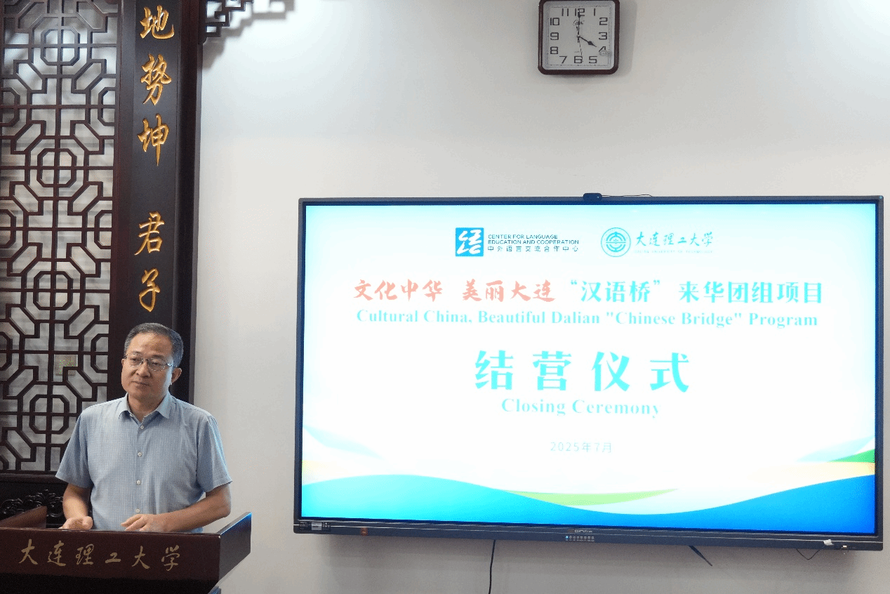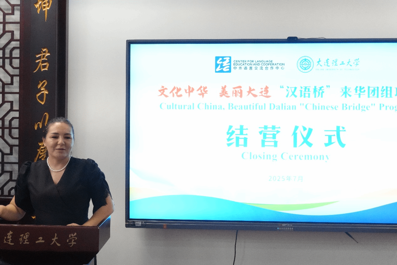2025年7月17日下午,2025年7月17日下午,国家教育部语合中心指导,大连理工大学承办的“文化中华·美丽大连”汉语桥夏令营结营仪式在大连理工大学海川楼圆满落幕。国际教育学院院长段玉平、副院长张继东、院长助理杜芳,乌兹别克斯坦国立世界语言大学中文系主任夏之芳、教师代表、志愿者以及全体营员共同出席了仪式。
