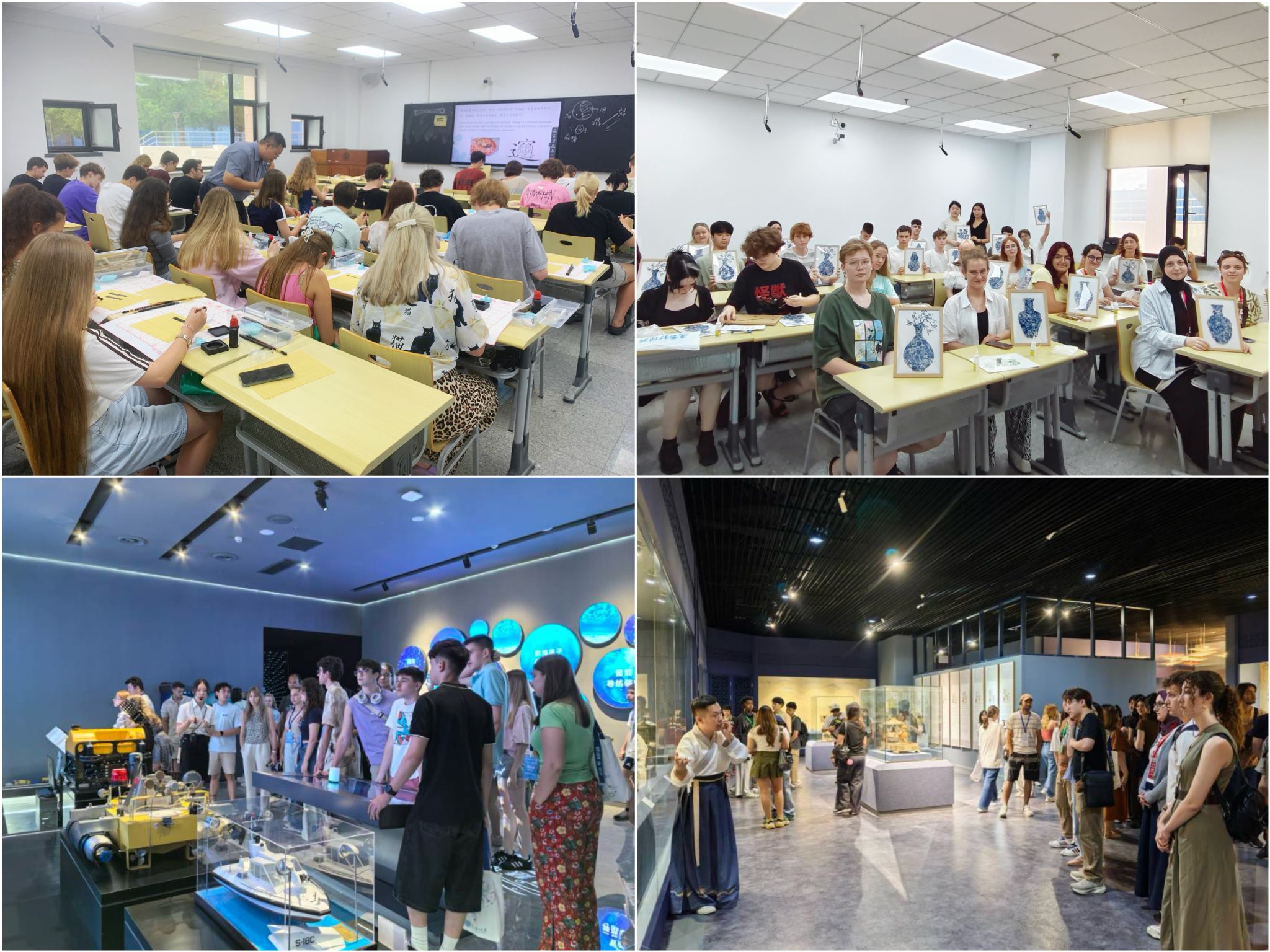 夏令营汉语课程根据营员水平分班教学,从零基础到高阶课程全覆盖。通过口语强化训练和互动教学,营员们的汉语水平显著提升。结营时,营员们自发拍摄短视频,展示学习成果,展现了他们对汉语的热爱与掌握。