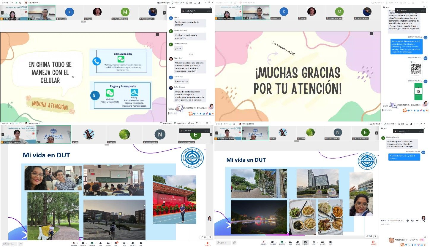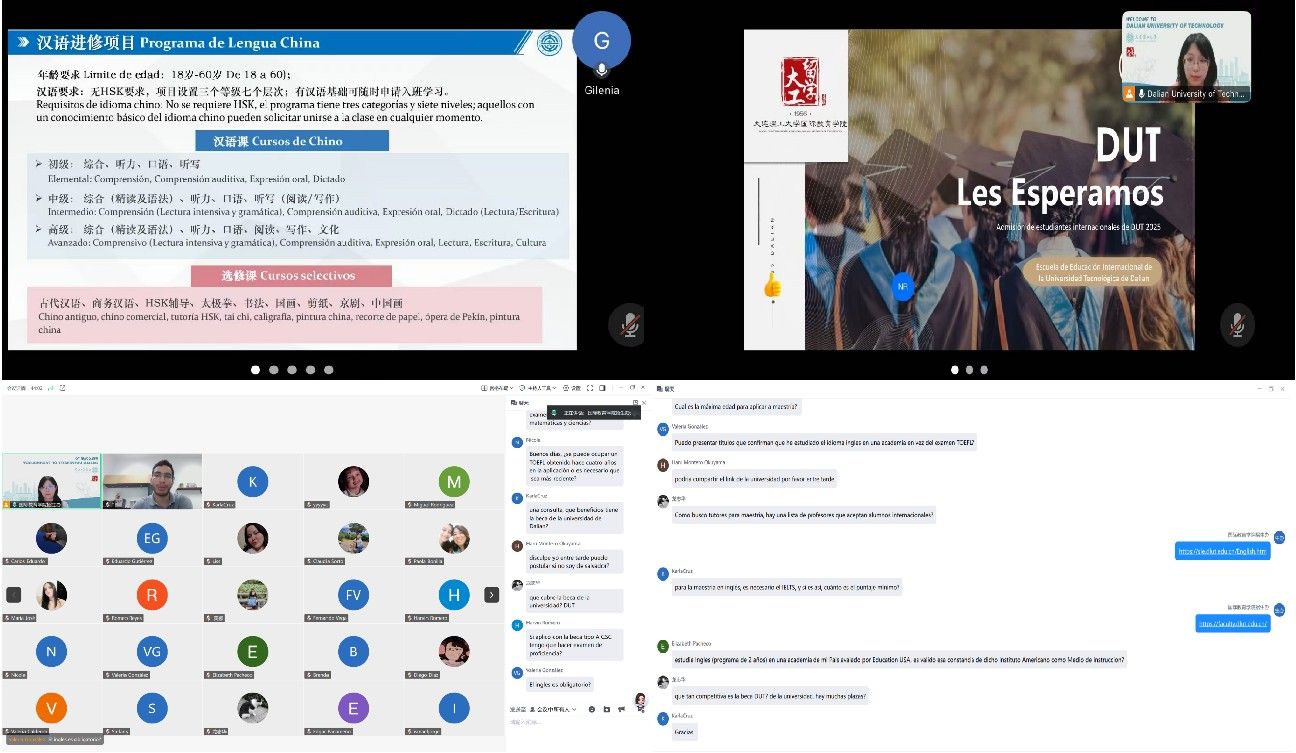 宣介会上,我校招生办公室项目负责人梁蓉华用西班牙语围绕多维度内容展开介绍,包括学校所在城市风貌、办学历史沿革、学科排名优势、各类招生项目细节以及面向国际学生的奖学金政策,系统清晰的讲解让参会学子对我校有了全面认知。此外,我校在读萨尔瓦多硕士生GERALD EDUARDO NAVARRO DIAZ、在读萨尔瓦多高级进修生DIANA CAROLINA CRUZ DE BUSTILLO线上分享留学体验。学生们结合自身经历,生动讲述了在中国便捷的移动支付生活、宜居的城市环境,以及在我校的学习与校园生活日常,为潜在申请者提供了有效参考。
