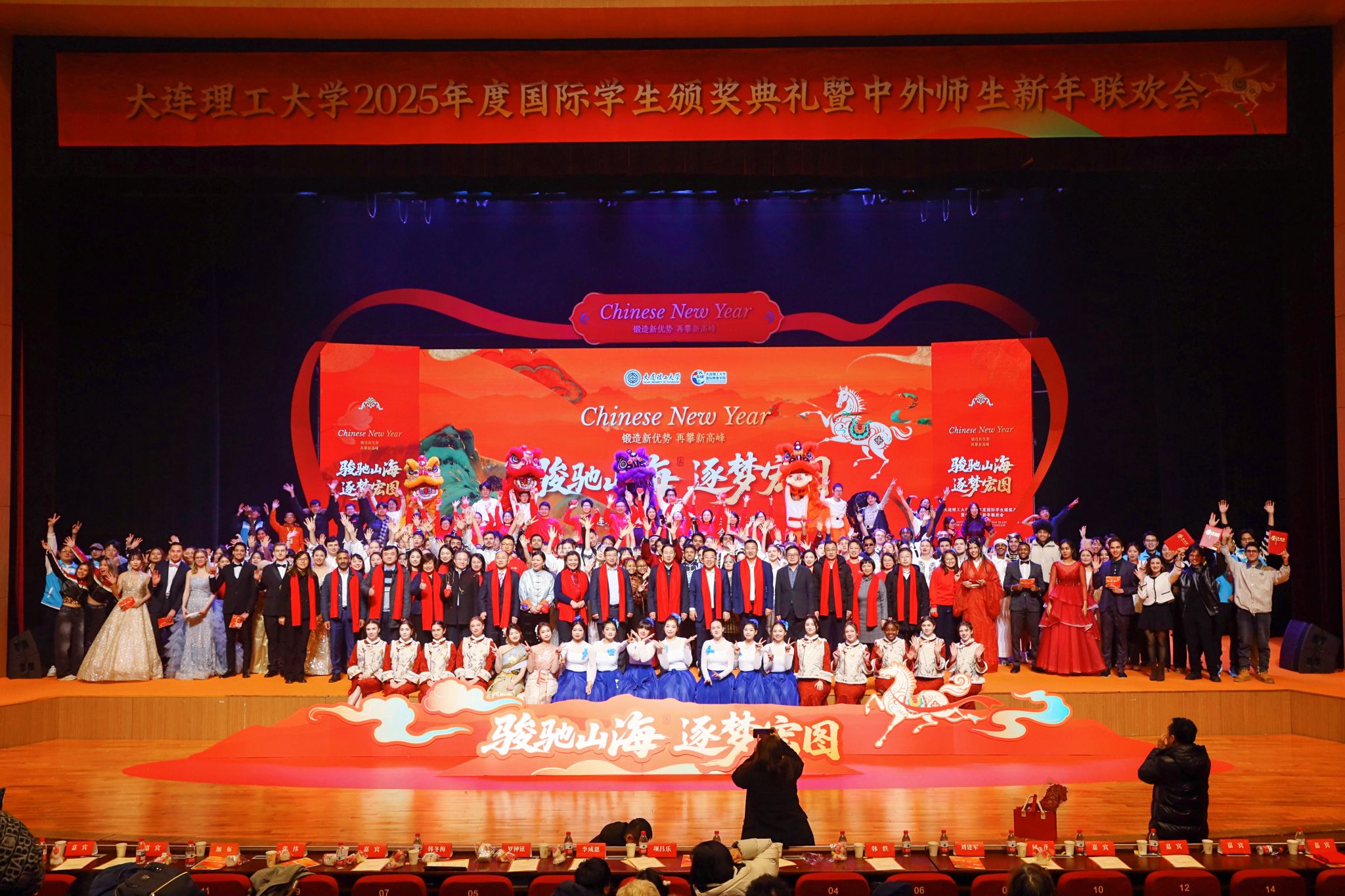 12月31日,大连理工大学2025年度国际学生表彰大会暨中外师生新年联欢会在大学生活动中心剧场顺利举行。学校党委书记项昌乐,党委常委、副校长李成恩,党委副书记、副校长张言军,党委常委、副校长罗钟铉,党委常委、宣传部部长韩轶,辽宁省教育厅、辽宁省教育国际交流协会、大连市政府外事办公室、大连市公安局出入境管理支队、大连市内高校代表及校内机关、国际学生培养单位相关领导与中外师生欢聚一堂,共贺新年。