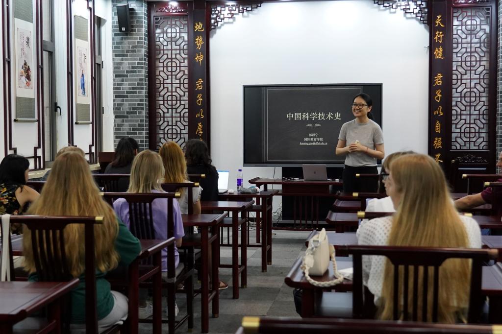 在科技知识讲座课堂上,授课教师为学员展示了中国科技的历史发展脉络及突出成就,生动讲解了现代科技如何助力中文教育高质量发展。讲座内容引人入胜、富有互动性,现场氛围十分活跃。