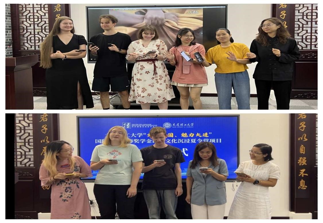 结项考核中,92%的学员汉语成绩为90分以上,83%的学员太极拳课成绩为优秀。来自英国、俄罗斯、蒙古的优秀学员分享了参与此次文化沉浸夏令营项目的学习心得。大家对教育部中外语言交流合作中心和大连理工大学提供的学习机会表示感谢,此次线下项目帮助他们领略到了中国传统文化的魅力,充分激发了学习中文的兴趣。学员们真诚地感谢每位老师和志愿者的付出。