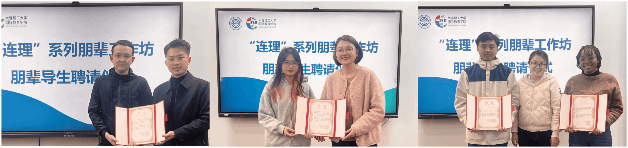 近日,大连理工大学国际教育学院2026年春季学期“连理”朋辈导生选拔工作顺利完成。学院院长助理郭涵宁、学生事务办公室主任张天昊、国际本科生辅导员刘欣为四名朋辈导生颁发聘书,并鼓励各位导生积极开展工作,以耐心相助,用温暖陪伴,用专业帮扶助力成长,做国际学生求学路上的同行者和引路人。