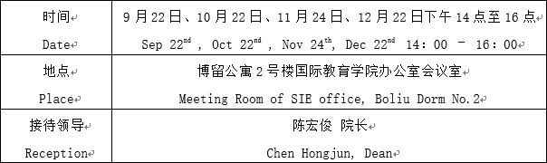 为促进与留学生的联系和沟通,更好地服务于广大留学生,国际教育学院2015-2016学年秋季学期院长接待日将于近期举行,欢迎大家踊跃参与。