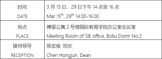 为促进与留学生的联系和沟通,更好地服务于广大留学生,国际教育学院2015-2016学年春季学期院长接待日将于近期举行,欢迎大家踊跃参与。