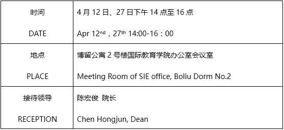 3. 预约时请填写《国际教育学院院长接待日预约登记表》,以便统筹安排。