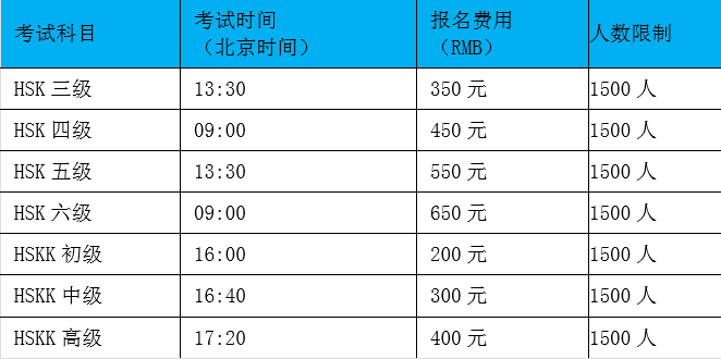 *报名及考试操作详见《汉语水平考试(HSK、HSKK)中国大陆地区居家网络考试(专场)考生须知》