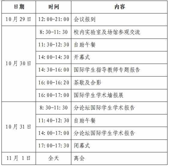 时间:10月29日-11月1日,为期4天(29日下午报到、30-31日论坛、1日离会)。