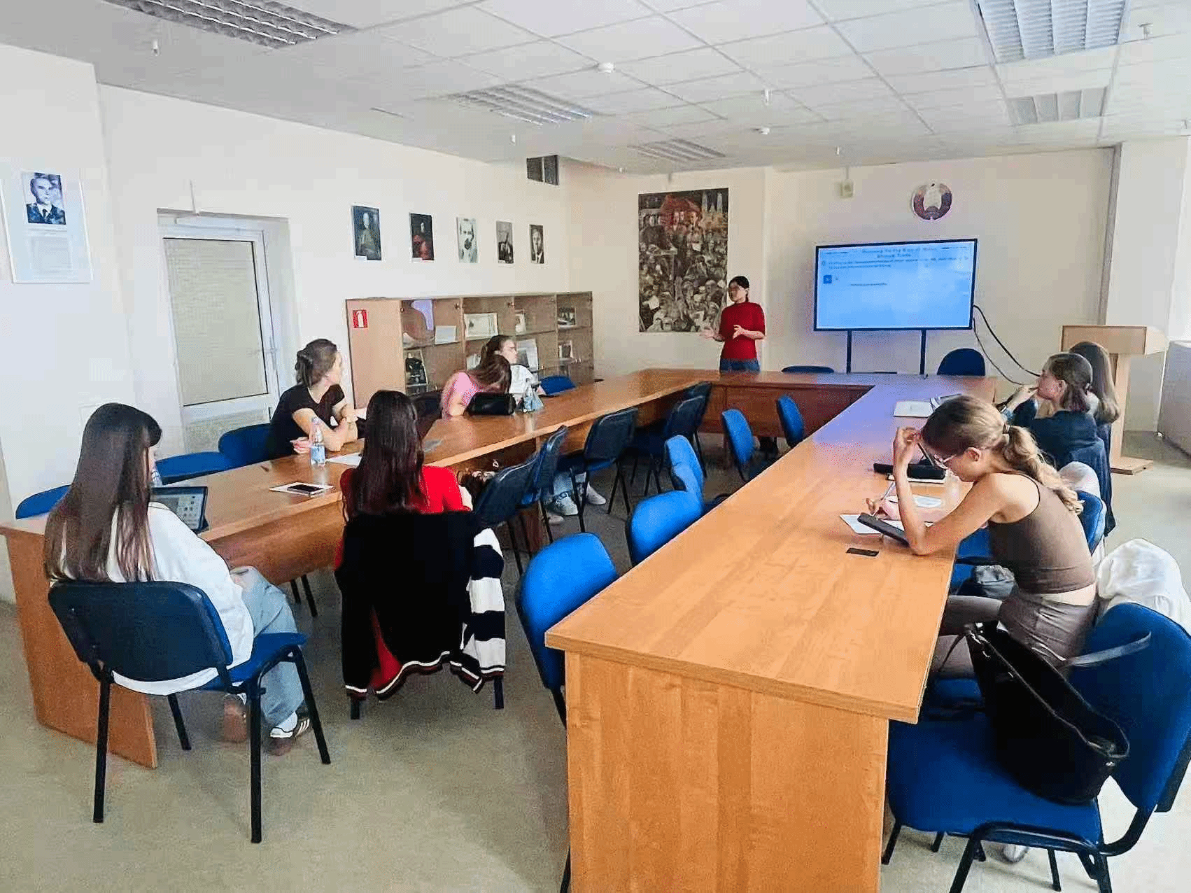 8月29-31日,会见了白俄罗斯国立大学世界经济学系主任娜塔莉亚副教授,对方详细安排了相关课程教学任务,包括每周的教学进度、合作授课的教师、以及最后的考核形式等,并与教研室相关教师进行了交流。