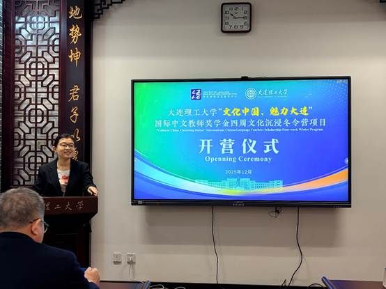 2025年12月10日,大连理工大学海川楼D109迎来了2025年度“文化中国·魅力大连”国际中文教师奖学金首届四周文化沉浸冬令营的开营。国际教育学院院长段玉平教授、院长助理杜芳、项目教师团队与来自蒙古、印度尼西亚、巴基斯坦、俄罗斯、白俄罗斯等国的首批学员共同出席。该冬令营在教育部语合中心指导下由大连理工大学精心筹备,旨在通过四周深度文化体验,提升国际学生中文能力,推动中外文化交流。