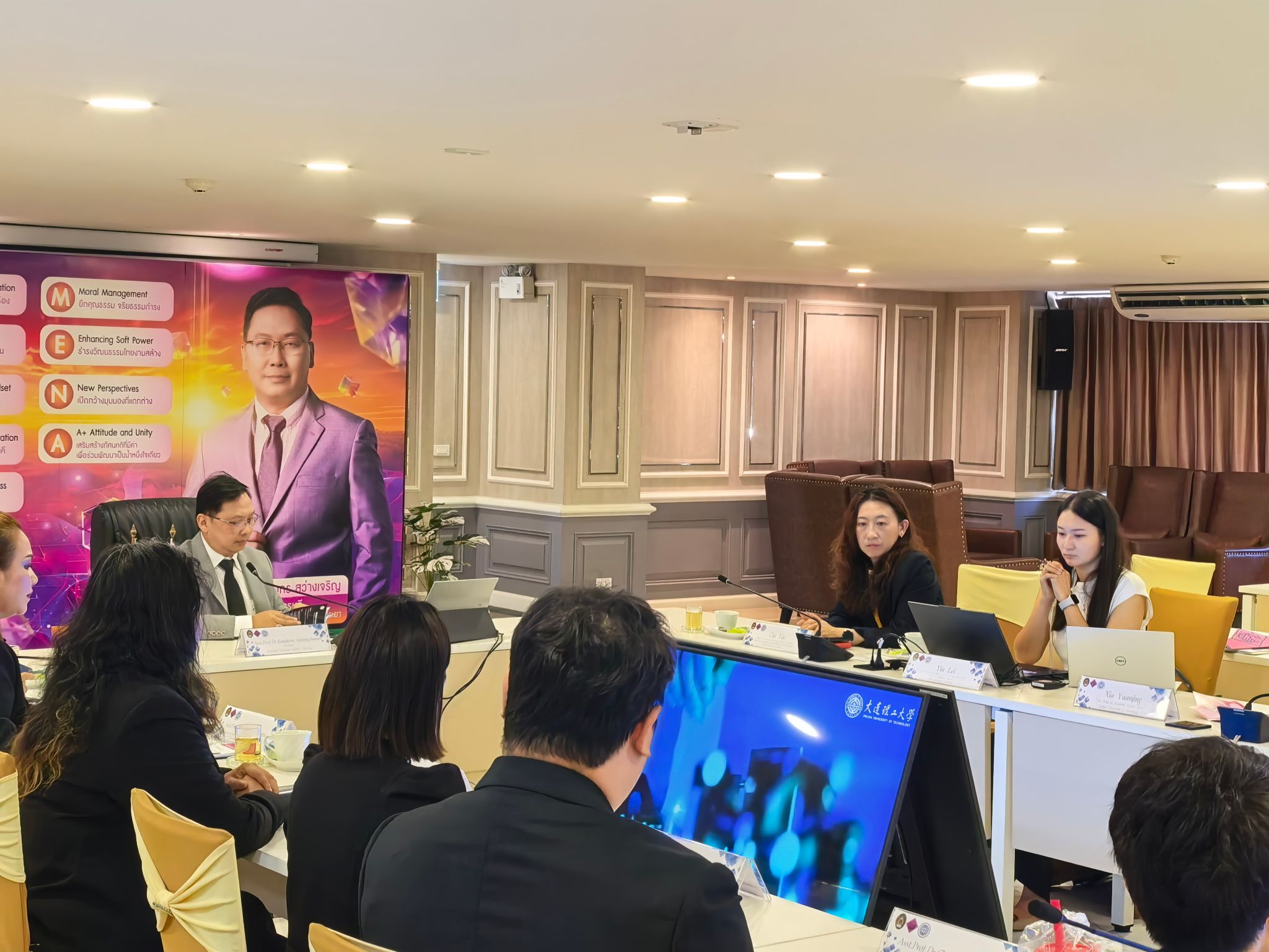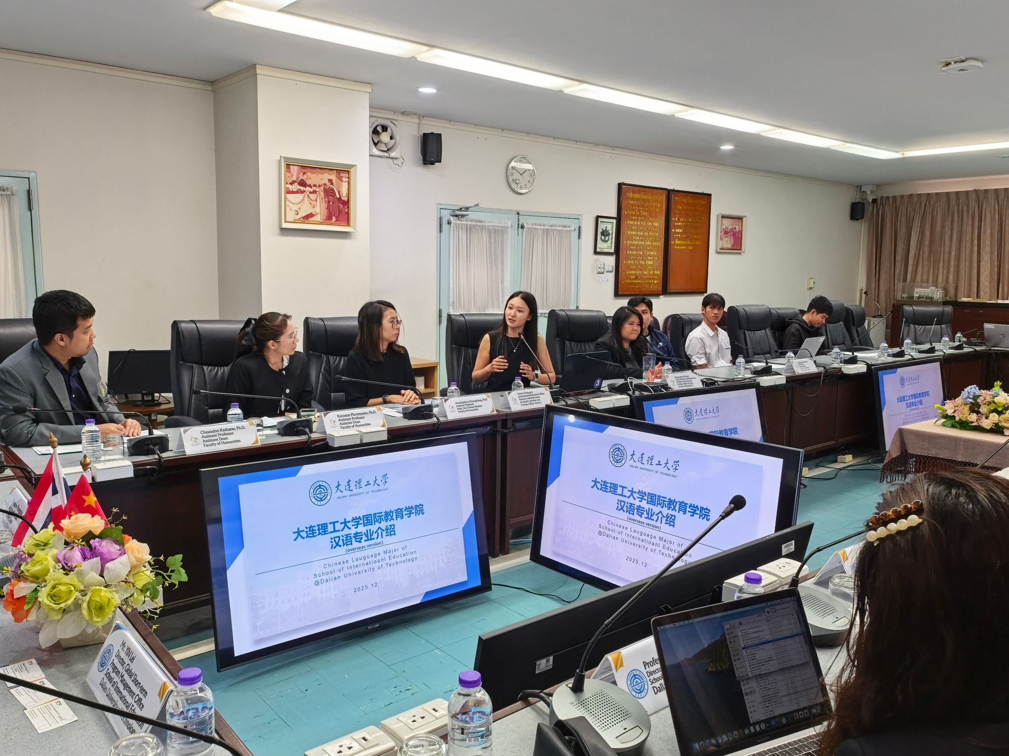 当日下午,团组一行访问了清迈大学文学院与工程学部。作为泰国顶尖国立大学,清迈大学与我校自2021年建立友好关系以来,合作持续深化。在文学院,双方探讨了汉语系学生交换、硕士项目、本科及本硕连读等合作模式。
