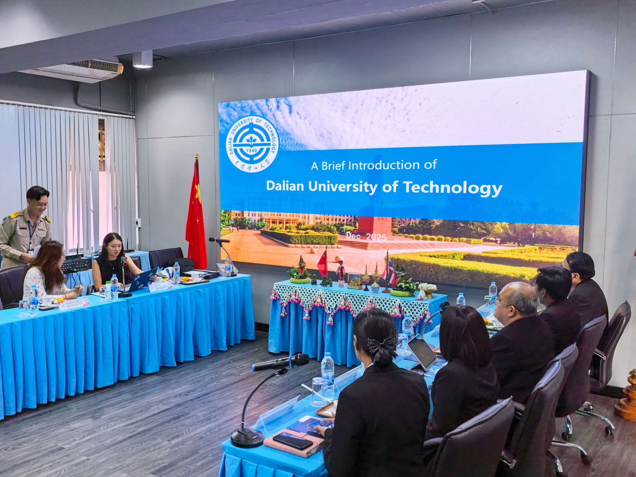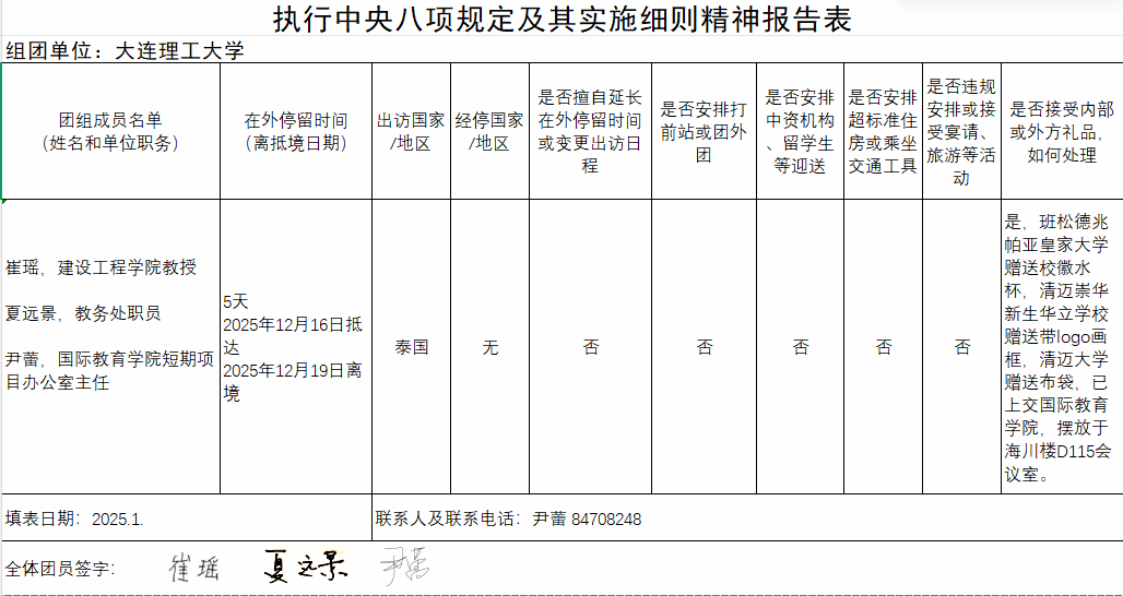 为持续推进学校国际化发展战略,深化与“一带一路”共建国家教育机构的务实合作,拓展优质来华留学生源渠道,2025年12月15日至19日,由建设工程学院崔瑶教授、教务处夏远景、国际教育学院尹蕾等3人组成的代表团赴泰国曼谷、清迈等地,先后访问曼谷九后崇圣预科中学、班松德兆帕亚皇家大学、清迈皇家大学、清迈崇华新生华立中学及清迈大学等5所教育机构,围绕教育合作、学生交流、招生宣传等开展深入洽谈,取得积极成效。