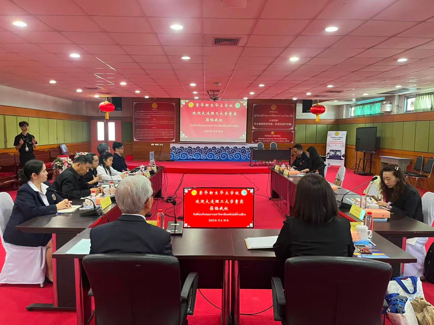 12月18日上午,团组一行访问了清迈崇华新生华立学校。该校为泰北历史最悠久的华文学校,高中毕业生普遍具备HSK4级水平。双方就学生来华留学意愿、招生宣传等深入沟通。校方表示将面向学生及家长组织专场宣讲,鼓励学生报考我校,并希望签署高中生源基地协议,开展短期研学合作。