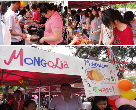 其中泰国学生们不仅为大连理工大学的同学们准备了美食,还换上了泰国传统服装,极大提高了现场摊位的人气,人们纷纷前来观看合影,泰国美食一直处于供不应求的火爆阶段。蒙古学生们也精心制作了可爱的宣传牌,很快,他们的美食也被大家抢购一空。