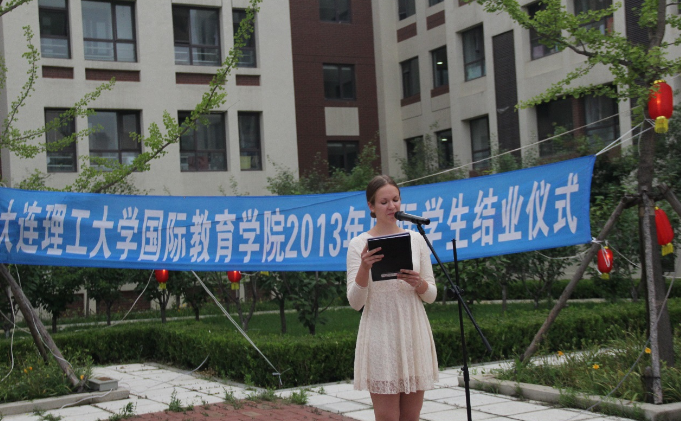 在浓郁而欢乐的中国文化氛围下,典礼正式开始,教师代表赵丽君老师和来自立陶宛的国际学生代表伊薇分别上台发言。赵老师首先对结业的国际学生们表达祝贺,祝愿他们都能拥有美好的前程。国际学生代表伊薇表达了对各位老师殷殷教导的感激之情,以及对同窗的不舍之情,并将永远珍藏在大连理工大学国际教育学院的难忘记忆。