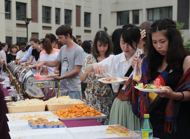 结业晚会在典礼之后隆重举行,在场的师生即兴上台表演。首先是马安琪、蓝如碧和伊薇为大家带来的吉他弹唱表演。她们用歌声表达了对老师及大工的不舍之情。国际学生们优美的旋律、饱含真情的演唱以及不时的小幽默,都让在场的观众深受感染。晚会上,多位国际学生自告奋勇地上台进行表演,现场高潮迭起。