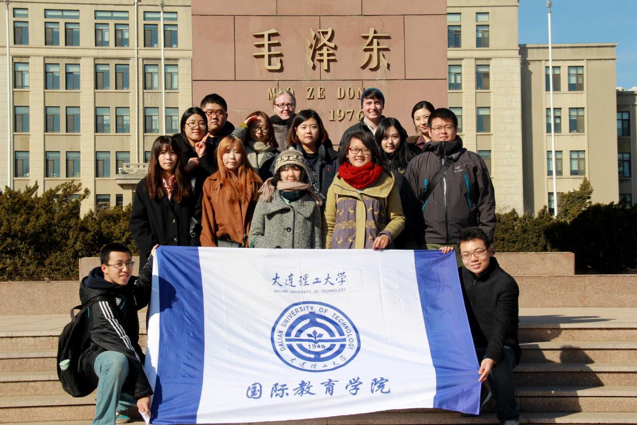 在参观了伯川图书馆之后,国际学生在主楼前的毛主席雕像前合影留念,为此次的游校园活动画上了圆满的记号。
