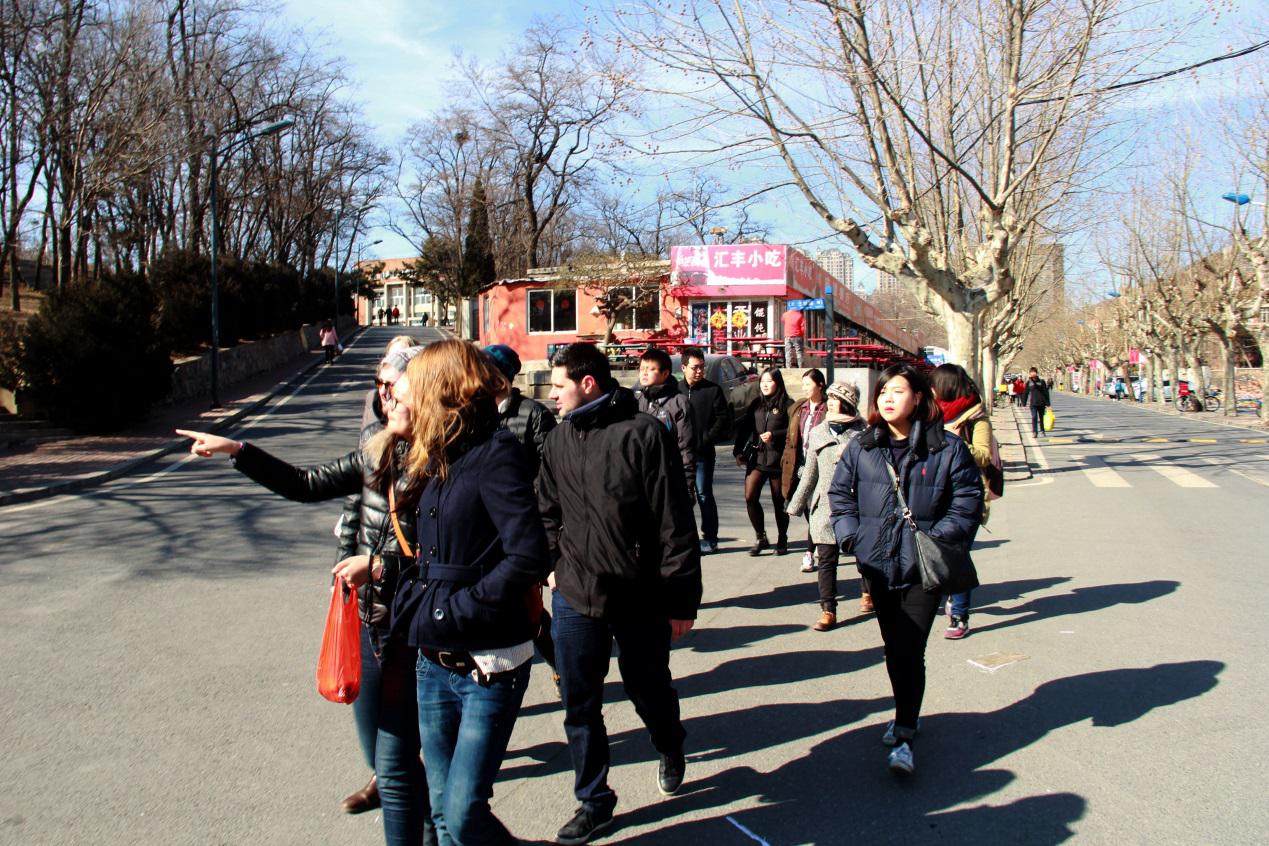 本次活动有来自日本、韩国、奥地利、美国等国40余名留学生及我院志愿者参加。下午2点,国际学生相约在博留公寓,从北山出发开始了游校园活动。