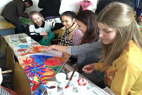下午1时许,同学们来到了机械楼,在每张课桌上都铺上报纸、摆放各色染料与画笔,所有学生入座后,交流会正式开始。国际学生们饶有兴趣的向中国学生们了解了清明节以及传统风筝的悠久历史,并产生了浓厚兴趣。之后,国际学生4人成组,开始自己动手制作风筝,并为做好的风筝绘上自己喜欢的图案,俄罗斯的女生们在风筝上绘出了鲜艳的花朵,几位巴基斯坦学生在风筝上画上了中国和巴基斯坦的国旗图案,并在上面用中文写了“中巴友谊万岁”,让在场的同学们十分感动;日韩学生画出了生动形象的卡通人物,更让所有人大开眼界。