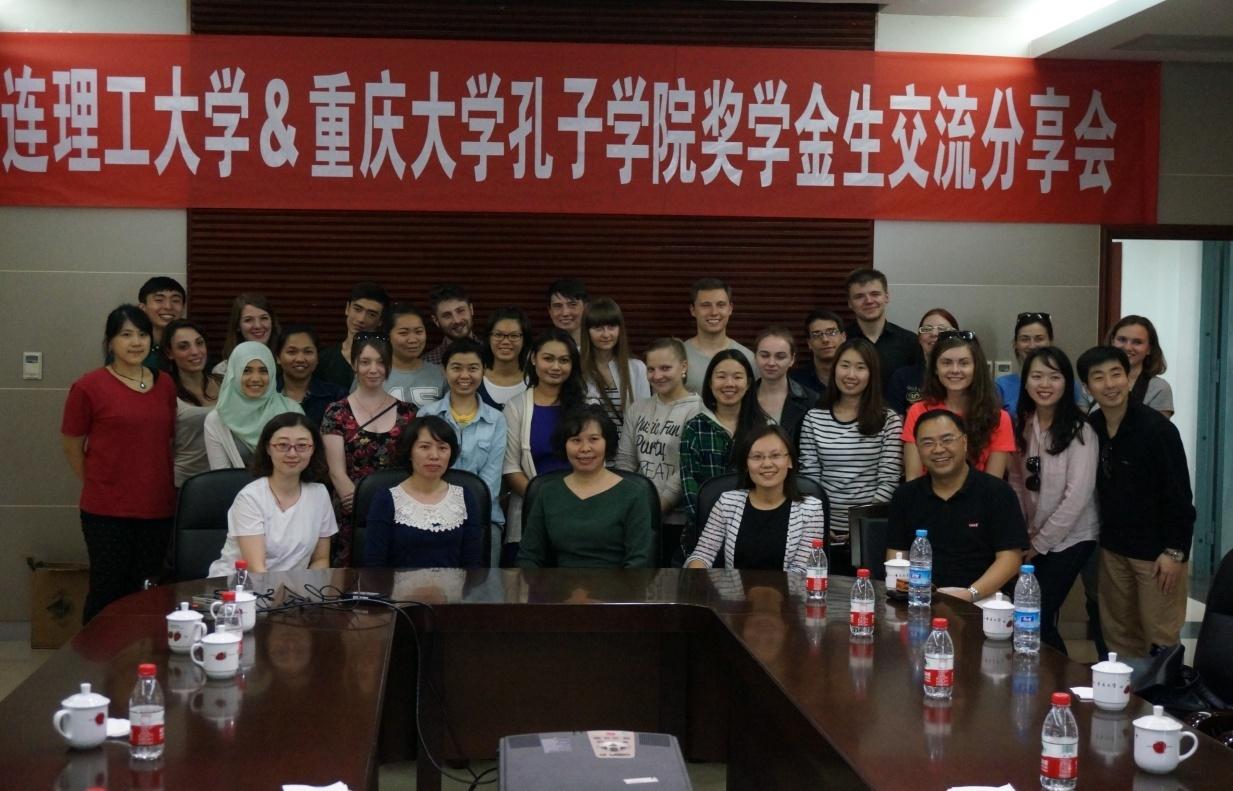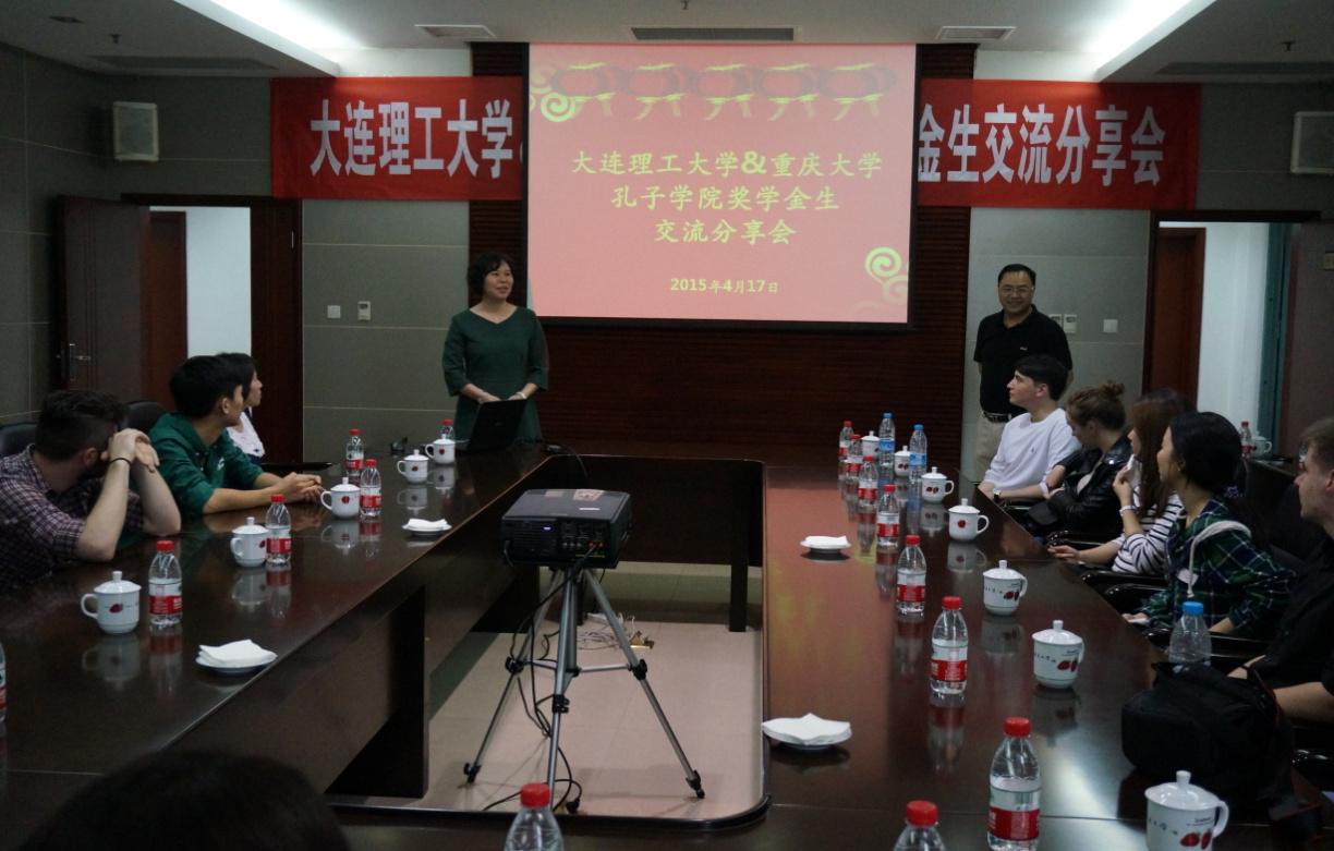 2015年4月17日下午三时许,“大连理工大学—重庆大学孔子学院奖学金生分享会”正式开始,本次分享会旨在通过两校孔院奖学金生的经验交流,进一步丰富学生生活,为两校间展开深层次合作奠定基础。会议由重庆大学国际学院院长助理郑晓红主持,重庆大学国际学院副院长兼海外孔院管理办公室主任黎静、大连理工大学孔院管理办公室主任郭淑红出席了分享会。