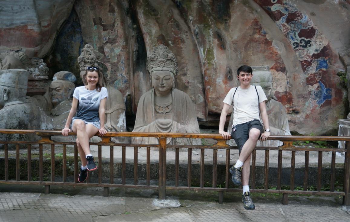 离开重庆大学后,学生们参观了中国四大石窟之一的“大足石刻”,在惊叹唐末、宋初年间能工巧匠出神入化的雕刻艺术之余,更对于中国文化中深厚的哲学底蕴产生了浓厚的兴趣。领略“大足石刻”后,学生们一行又赴“武隆”感受中国西南的自然风光,感受“山城”重庆独特的自然地貌。在“天坑”、“地缝”中,同学们领略了老树藤萝盘绕,泉水流瀑挂壁险峻幽深,怪石峥嵘,明涧湍急等美景。在“世界三大溶洞”之一的“芙蓉洞”内,大家又一次感慨大自然的鬼斧神工,巧然天成。考察结束后,学生们纷纷表示,此次文化考察收获良多,感谢国家汉办、感谢大连理工大学国际教育学院为大家提供近距离感受中国文化的机会!