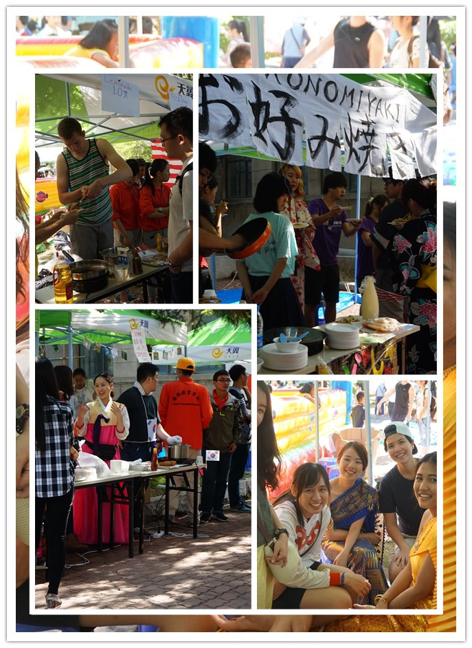 国际教育学院组织了来自日本、韩国、泰国、巴基斯坦、美国、白俄罗斯等国家的国际学生参与到这个全校师生狂欢的节日中。上午8点,国际学生们早早将帐篷搭起,准备好食材和烹饪器具,迫不及待地想要开张营业将自己国家的美食与全校师生分享。还未等到8点半嘉年华正式开始,国际学生的摊位前就已人山人海。国际学生制作的各国美食,特色精致、飘香四溢,吸引了大量的购买者,很多顾客买到美食后,仍不愿离开国际学生的摊位,他们认真观察美食的制作过程,好奇国际学生怎样制作出如此美味可口的食物。国际学生装饰的独具特色的帐篷,色香味俱全的美食,引得顾客不停涌入摊位、争相购买,生意异常红火。国际学生们看到自己国家美食如此受欢迎,更加鼓足了干劲,用心制作,想要通过自己的力量,促进与中国之间的美食文化交流。国际学生制作的国际美食非常抢手、生意火爆,嘉年华还未结束,所有国际美食已全部售完,无论美食的制作者还是美食的品尝者,脸上都绽放着幸福的微笑。