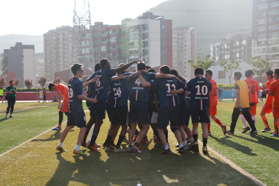 国际教育学院足球队由19名来自各个国家的国际学生组成,自球队成立以来,队员们迅速磨合,相处融洽,虽然来自不同国家,但是球队上下具有很强的凝聚力。球队以默契的传切配合见长,进攻犀利,防守硬朗。当然,任何冠军球队与队员们平日的努力是分不开的,国教足球队每周都会进行训练,即使烈日炎炎,也常能看到小伙子们在球场上奔跑的身影。