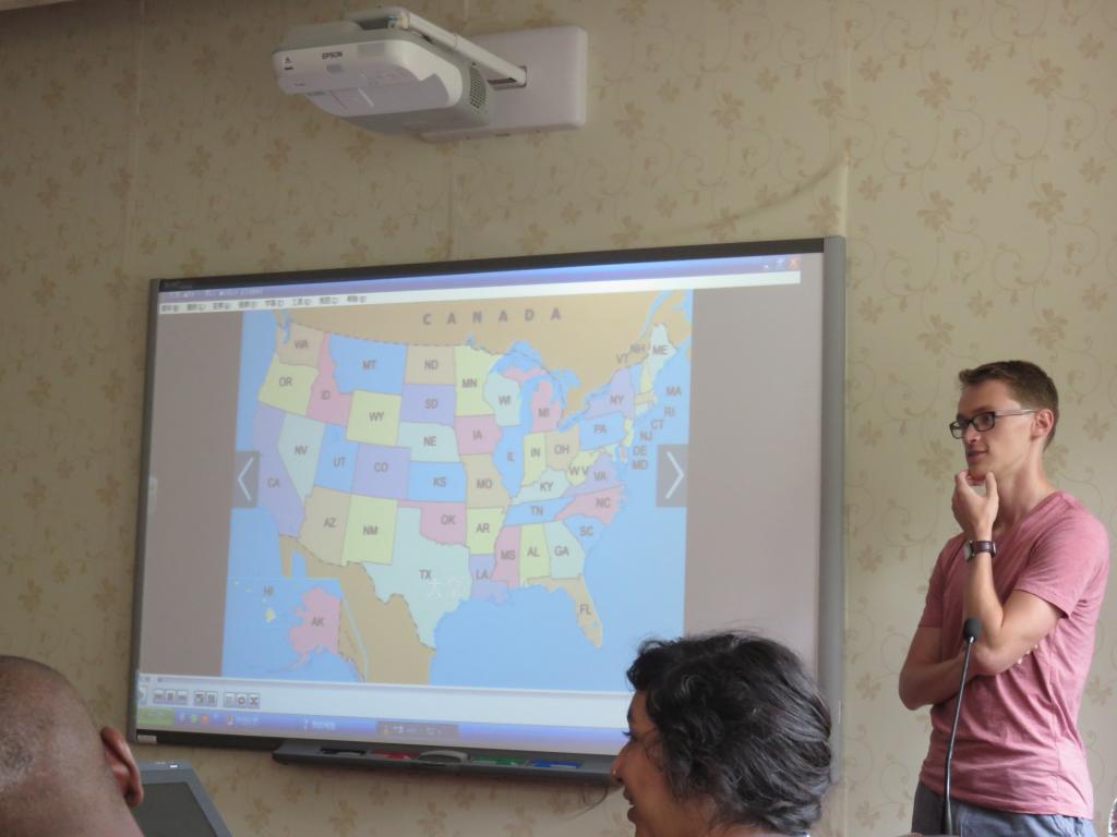 最后,来自美国的同学们,用丰富多彩的图片向大家介绍了美国的文化和日常生活。外国友人们用生动活泼,幽默的语言缩短了中国学生与国外友人交流的距离。交流活动在中外同学们的互答互问中愉快地结束。