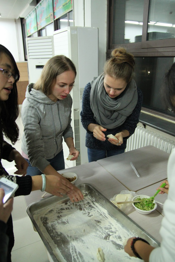最后,大家一起来到了博留食堂二楼开始了汉语角的压轴环节——包饺子。