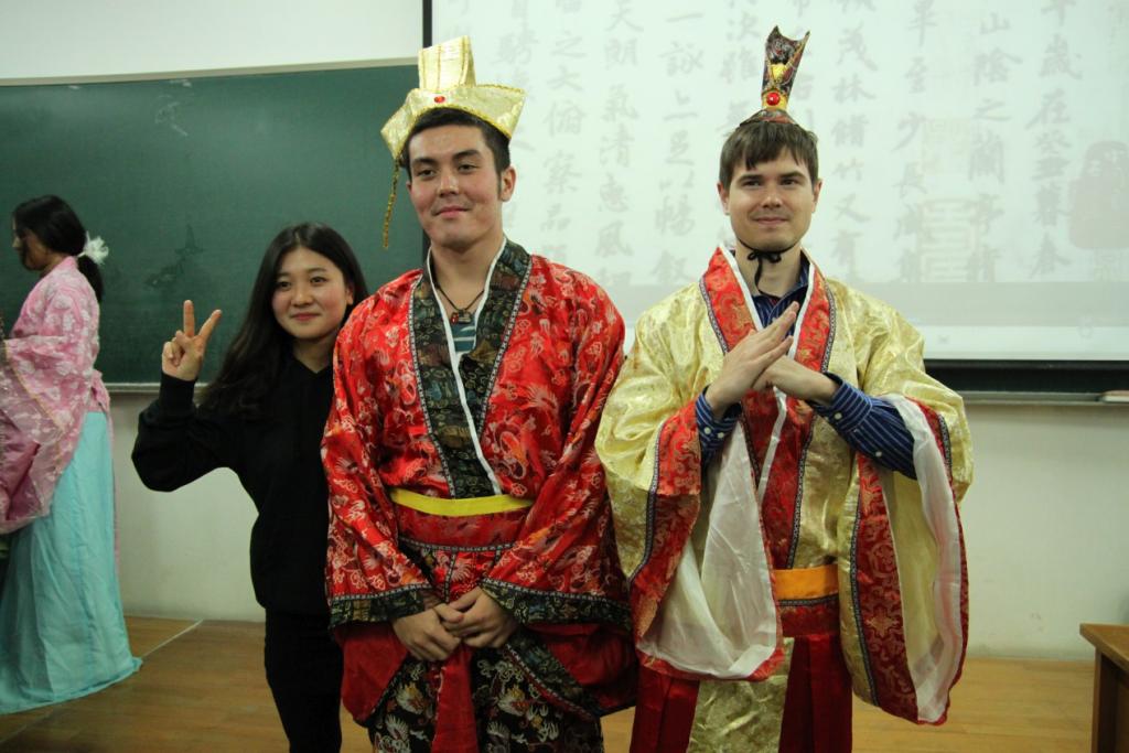 感受了中国传统的一些小游戏之后,志愿者们为大家带来了美美的传统服饰——汉服。独特的前襟后裾,充满内涵的小衣、中衣和大衣,这些傲然独立,体现了浓浓的汉朝文化的服饰穿在肤色五官各异的留学生身上,竟也是如此和谐帅气。