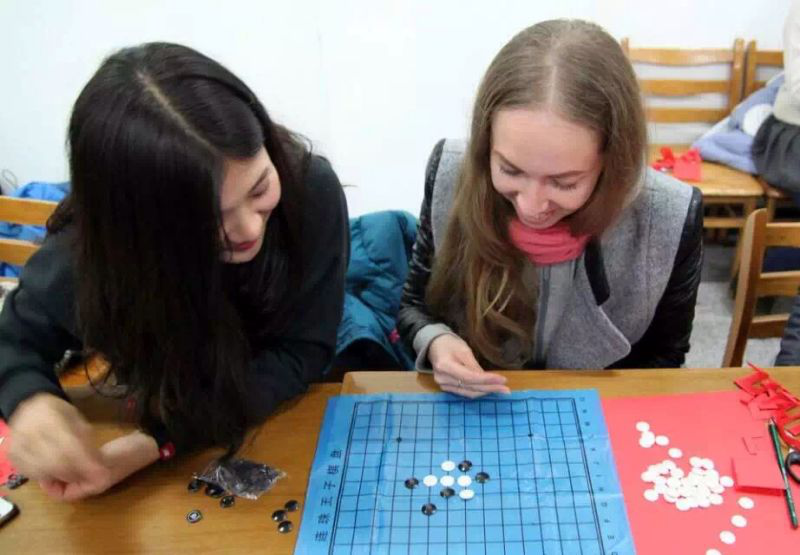 其次的五子棋环节里,简单易学的游戏方法也让留学生们爱不释手,你来我挡,棋盘上好不热闹。