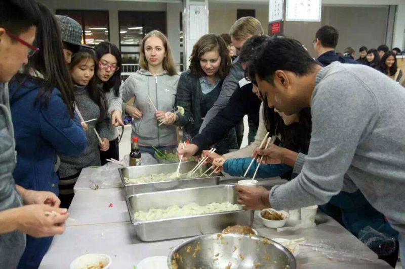 作为汉语角每年的压轴活动,每次的相聚都有不同的欢乐。是将面粉蹭到脸上的亲昵,是馅儿太多包不上的笑颜,是看着饺子下锅的满足,也是当饺子上桌时的那一刻,如腾腾的蒸汽弥漫整个食堂的无比幸福。原来这就是中国传统文化的内涵——有朋自远方来,不亦乐乎。