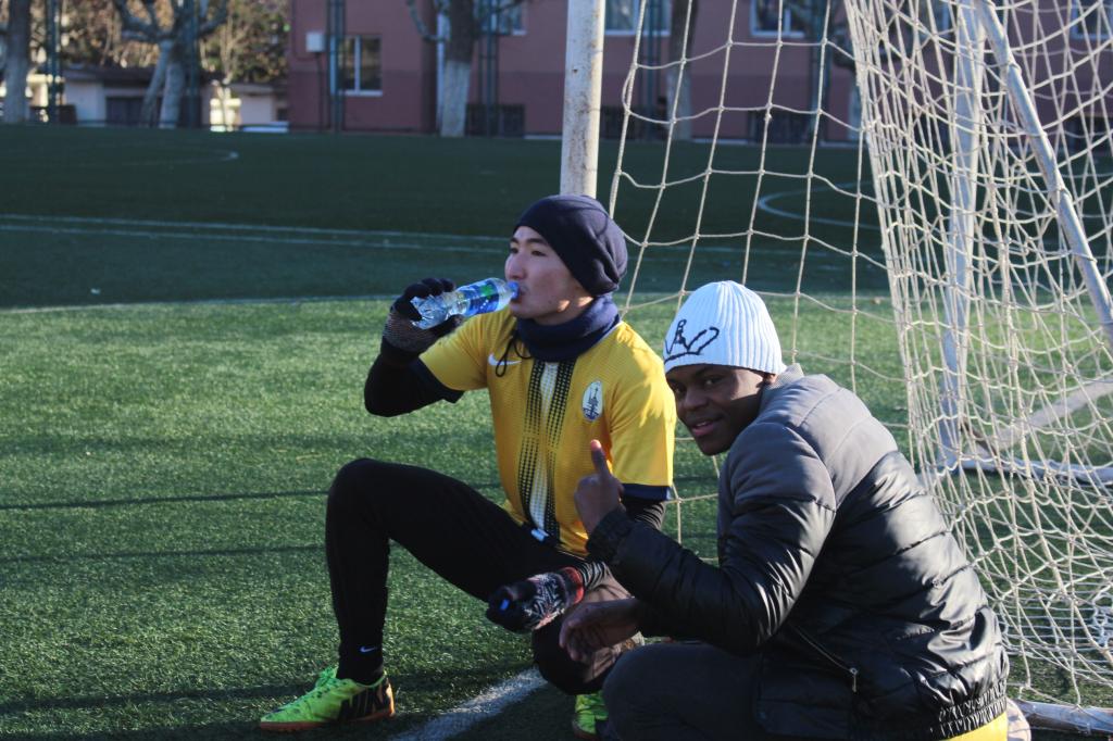开赛不到五分钟,材料16号隋龙飞抓住机会, 在守门员将球扑出之际,上前怒补一脚,拿下一球。在对方的激励下,国教队员迅速进入了状态,团队之间的合作也更加行云流水,随后在11分钟时,11号NURIK带球破门,势如破竹。找到状态的队员们势不可挡,一分钟之后,国教18号NAMIB ILENE再度破门成功。此时,国教已经占据优势。上半场快要结束之际,11号NURIK又是一脚大力射门,给下半场的比赛赢得了更多的主动权。