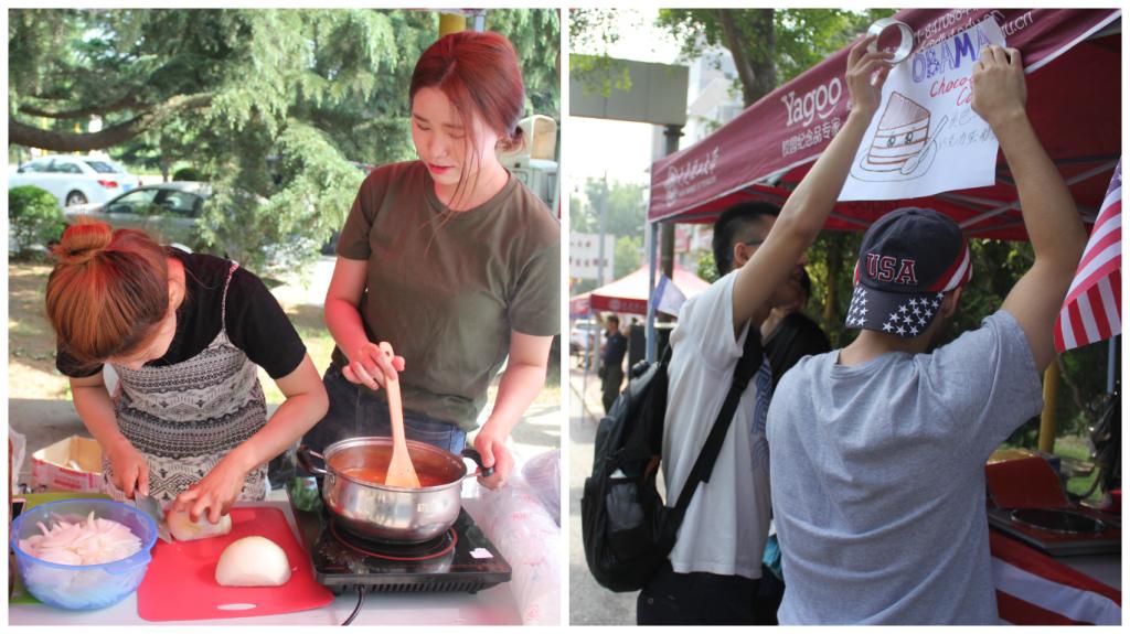 嘉年华当天,来自韩国,美国,俄罗斯等国家和地区的国际学生代表们早早就到达摊位,搭帐篷,安置烹饪器具,为制作美食和布展做准备。随着活动的开始,人流的增多,国际学生们的摊位迅速吸引了众多的中外“顾客”,飘香的食物,特色的服饰,多彩的帐篷都使得国际学生们的出现之处都赚足了眼球,国际教育学院的学生和志愿者们个个干劲十足,辛勤制作出来的美食味道可口,食客们络绎不绝。