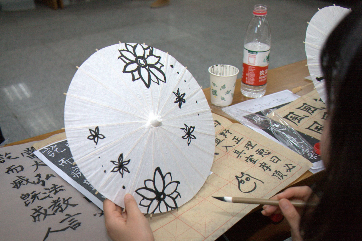 只在纸上写怎能过瘾,活动还为大家准备了竹简、纸扇、纸伞,让大家尽情发挥想象,制作属于自己的书法作品。活动最后评选出了五份优秀作品,并颁发精美奖品。