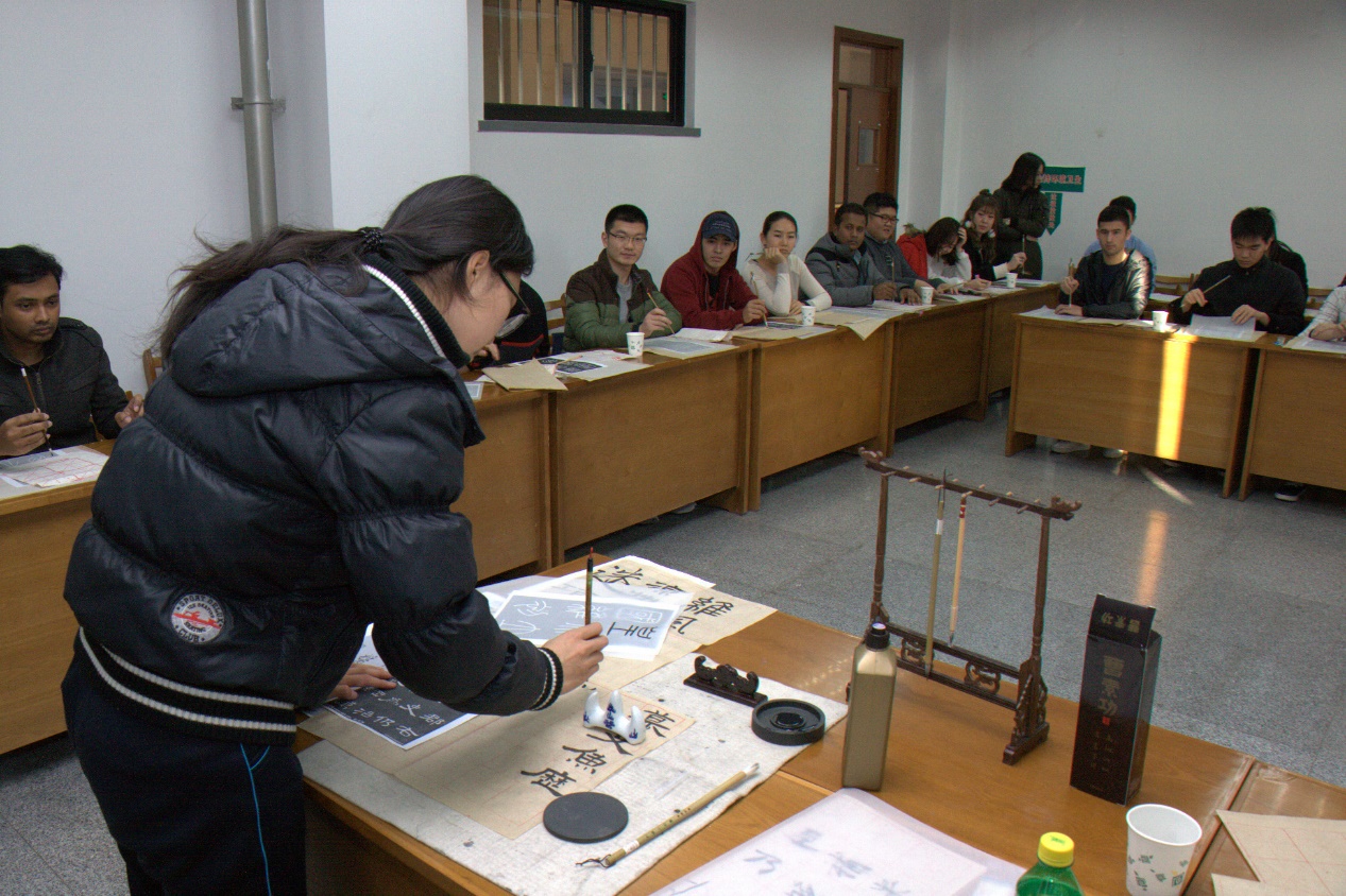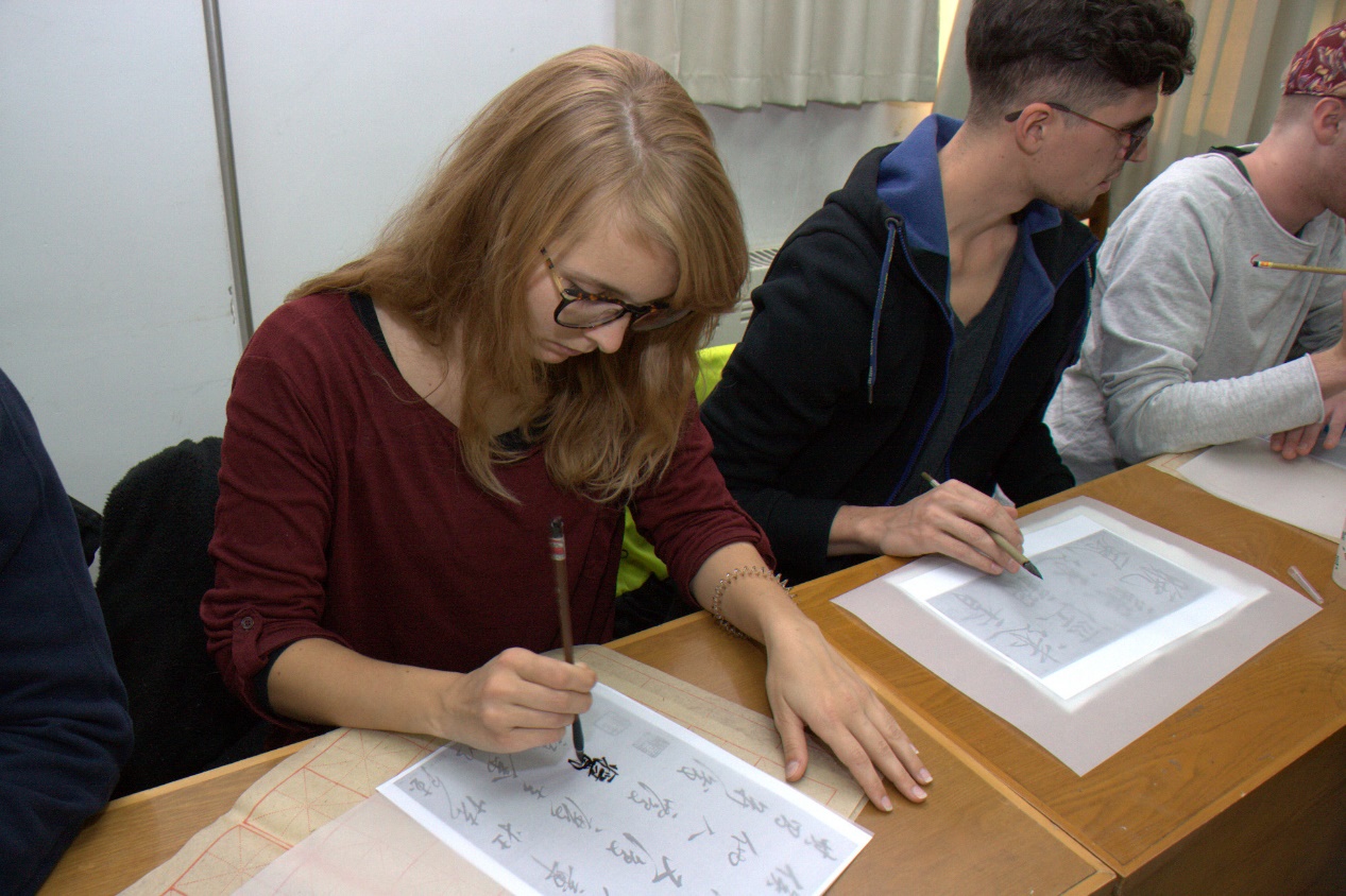 描红、临帖,从未接触过中国书法的国际学生,写起毛笔字依然有模有样。