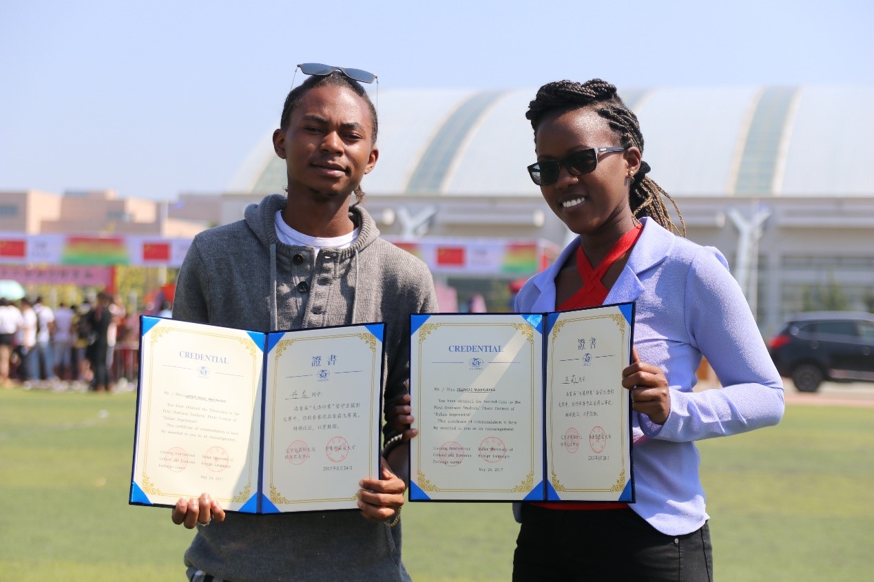 5月24日下午,”大连印象”留学生摄影大赛在大连外国语大学举行了颁奖典礼,我校来自卢旺达的木菲和来自刚果民主共和国的丹尼两位留学生分获本次大赛的二等奖和三等奖。