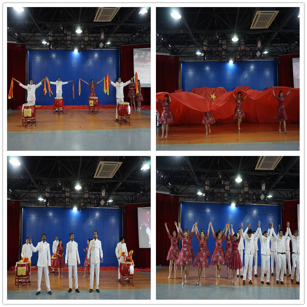 我校组织9个国家的18名留学生参加此次汇演,带来小合唱《红旗飘飘》,鼓乐齐鸣,红旗招展,深情的演绎,精彩的编排,引起了在场观众的大合唱,结束时掌声雷动,获得了全场一致的好评。