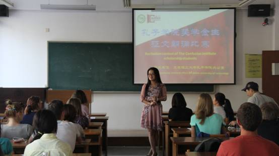 本次活动“我的梦想与中国”共有17名孔院奖学金生提交了主题征文。比赛开始前,国际教育学院副院长郭晓郁上台致辞,她高度评价了孔子学院在加强中国与世界的文化交流方面作出的重大贡献,并勉励学生勤奋学习,秉承孔子学院发展宗旨,成为中外友好桥梁。