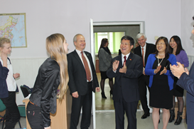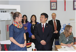 白俄罗斯当地时间2014年10月14日下午,中华人民共和国驻白俄罗斯大使馆特命全权大使崔启明先生及夫人莅临白俄罗斯国立大学共和国孔子学院。白俄罗斯国立大学副校长伊瓦什科维奇院士陪同。