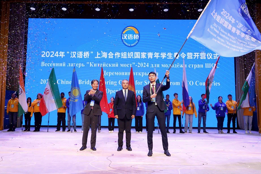 4月15日,项目开营仪式在新疆师范大学隆重举行。新疆维吾尔自治区人民政府、教育部中外语言交流合作中心、中国国际中文教育基金会、教育部国际司、外交部欧亚司、新疆师范大学、上海合作组织、伊朗伊斯兰共和国驻华大使馆、巴基斯坦伊斯兰共和国驻华大使馆等机构的重量级嘉宾出席并致辞,来自俄罗斯、哈萨克斯坦、吉尔吉斯斯坦、塔吉克斯坦、乌兹别克斯坦、印度、巴基斯坦、伊朗等8个上合组织国家的近500名青年学生参加了仪式。