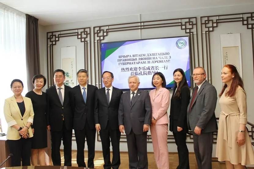 当地时间2024年6月3日上午,辽宁省省长李乐成一行访问我校海外合作孔子学院——白俄罗斯国立大学共和国汉学孔子学院。白大孔院外方院长阿纳托利·托济克、中方院长刘素玲、副院长列奥尼德·帕贾诺夫斯基、中文与中国国情教研室主任尤莉雅·莫洛特科娃、教学中心主任娜塔莉亚·阿达姆奇克及孔院教师热情接待。